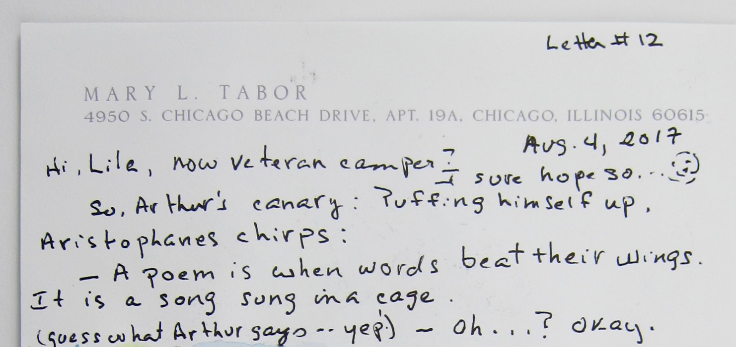 My correspondence with my granddaughter in sleep-away camp
