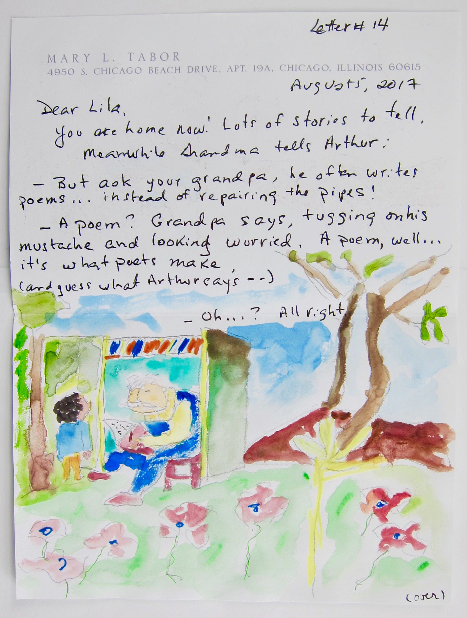 I'm sorry I'm with grandpa on this one. I'd write poems any day rather than fix pipes and I've had to fix broken pipes and plumbing twice! I wish I had the option to fix those plumbing issues with a poem or two instead. I love the drawing in this letter. Must have taken longer to do the illustration than write the letter. What a lucky granddaughter.
